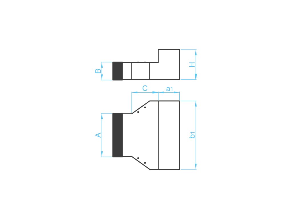 - Slouží k ukončení plochého potrubí a jako přechod mezi plochým potrubím a podlahovou mřížkou.