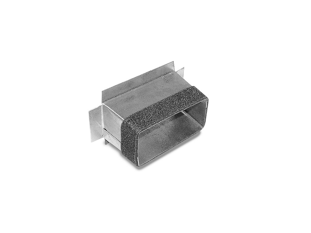 Plochý nástavec slouží k připojení plochého kanálu FK, nebo FKE a stěnu čtyřhranného potrubí.