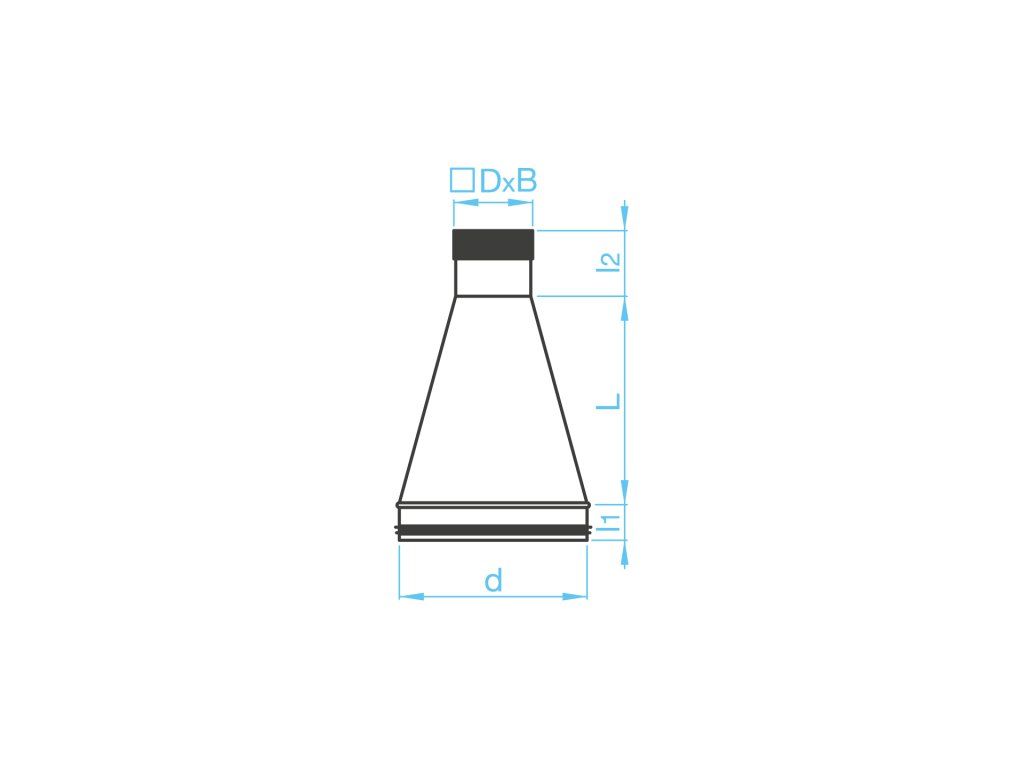 - Slouží k přechodu mezi plochým kanálem a spiro potrubím, popř. hadicí.
