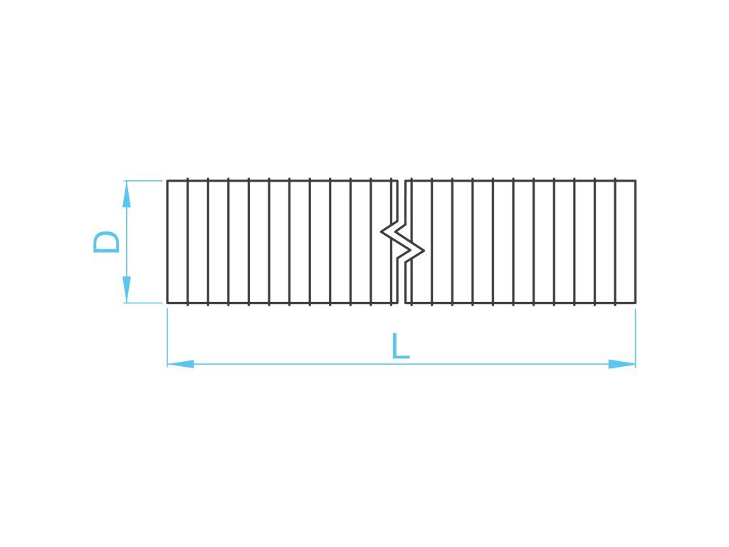 Hadice je tvořena profilovanou hliníkovou páskou síly 0,1 mm (100 mikronů) a je stlačena na délku cca 1 m, po roztažení má hadice délku přibližně 3 m.