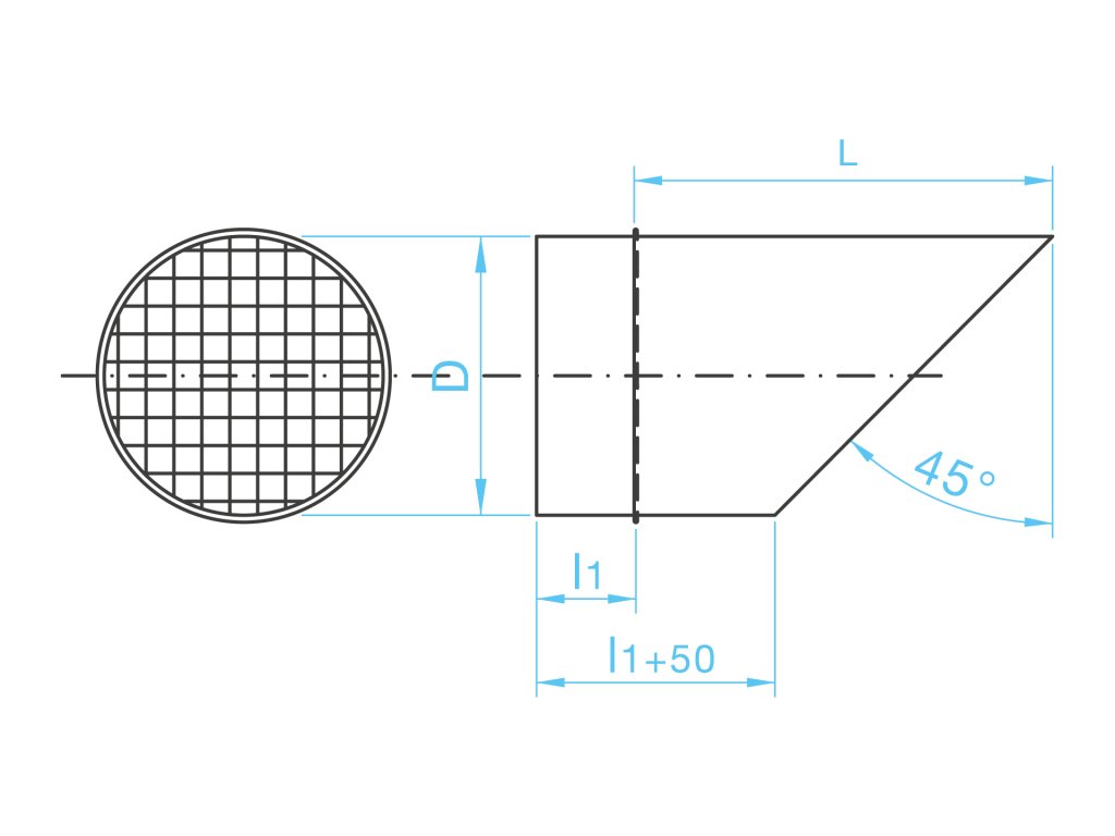 - Štít pod úhlem 45° slouží k ochraně potrubí před deštěm.